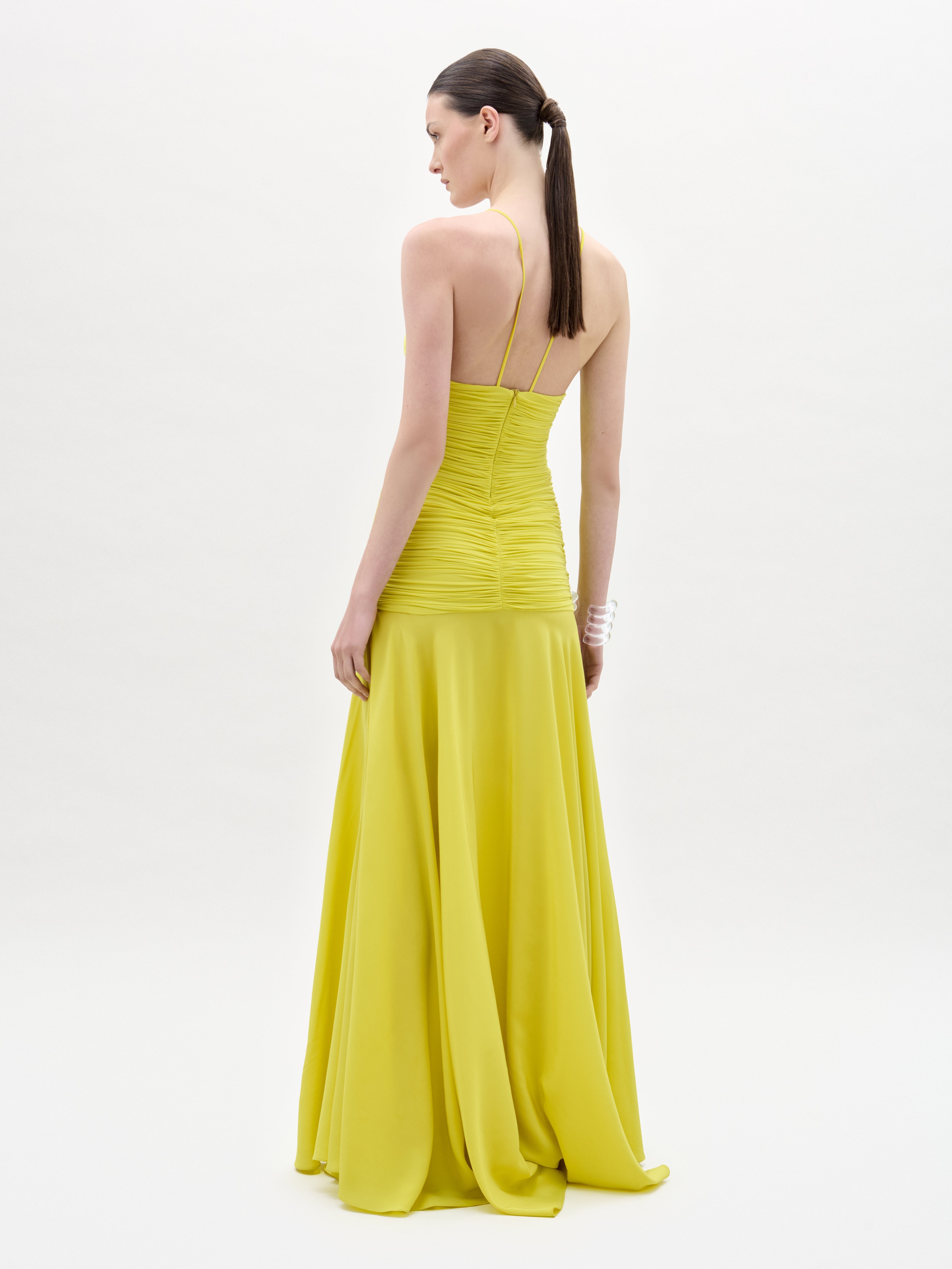 - Ruched detailing along the bodice